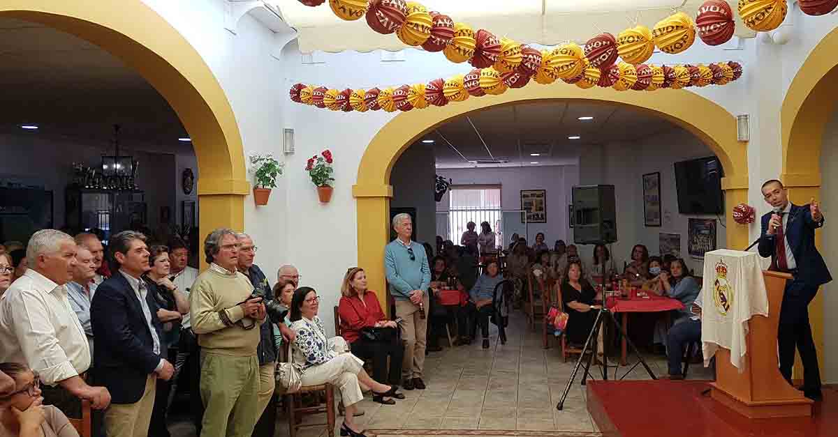 Este domingo, 1 de mayo, la protagonista ha sido la Peña Madridista de El Puerto que ha engalanado su sede de calle Zarza para la presentación ante sus socios y amigos de su cartel de Feria, obra de Miguel Sánchez Lobato. Su composición anuncia la caseta de feria que la Peña tendrá un año más en el recinto Ferial de Las Banderas.
