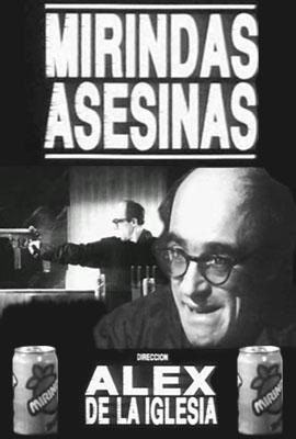 MIRINDAS ASESINAS (1991) (C). De la Iglesia, ya desde sus inicios fue la “repera”. Este corto”, su primera cinta, es todo un compendio de lo que será su carrera posterior: violencia, terror, claustrofobia, delirio y sarcasmo. Ya el hecho que aluda a aquella bebida carbonada horribilis, con sabor frutal dulzón e intragable llamada Mirinda, es todo un sarcasmo que retrata a la sociedad sesentera.