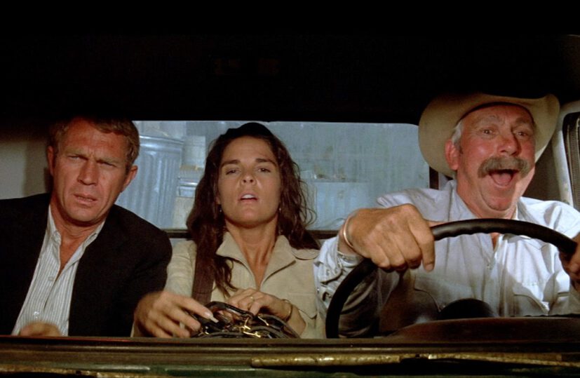 Reparto épico donde un sobrio McQueen, acompañado en esta ocasión por la encantadora Ali MacGraw, nos lleva de un lado a otro con los malos y la mala suerte pisándoles los talones. Destaca el frenético y tenso ritmo durante toda la cinta. Acompañan también y entre otros: Ben Johnson, Sally Struthers o Al Lettieri, todos en plenitud de facultades, en una road movie que acabará bien o mal según se vea la versión antes o después de Franco. En la versión buena escapan con la pasta. Y eso es lo que queríamos que ocurriera, claro.