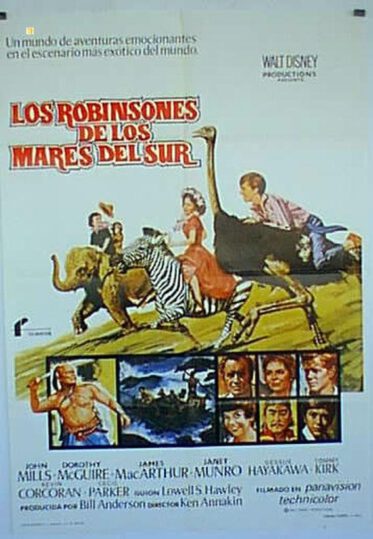 LOS ROBINSONES DE LOS MARES DEL SUR (1960). No creo que haya una película que viera en tantas ocasiones en mi infancia como esta. A mí y a mis hermanos, aún pequeños, nos encantaba y repetimos y fuimos a verla en su época de estreno y posteriores, siete u ocho veces más, mínimo.