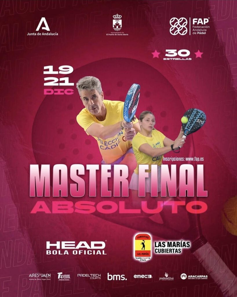 El Club Deportivo Las Marías Cubiertas será escenario del Master Final Absoluto Andaluz de Pádel, que se celebrará del 19 al 21 de diciembre, una cita que pondrá el broche a la temporada autonómica y que reunirá en El Puerto de Santa María a la élite del pádel andaluz.