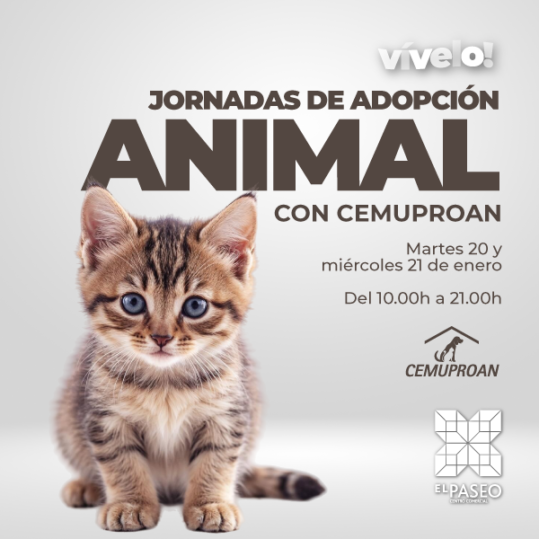 El centro comercial El Paseo acogerá los próximos martes 20 y miércoles 21 de enero unas jornadas de adopción responsable de gatos, organizadas en colaboración con Cemuproan, el Centro Municipal de Protección Animal del Ayuntamiento de El Puerto de Santa María. La actividad se desarrollará en horario ininterrumpido de 10 a 21 horas, abierta a todos los visitantes.