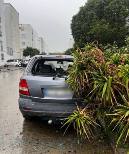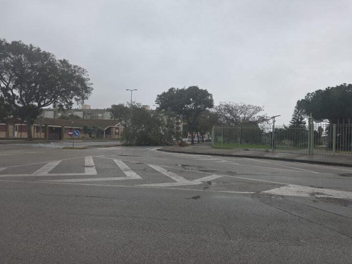 Las incidencias por árboles caídos se han repetido en otros puntos de la ciudad. En las inmediaciones del IES Las Banderas, un árbol ha caído sobre la vía pública, sin que consten daños personales. Un episodio similar se ha registrado en el entorno del colegio de El Juncal, donde otro ejemplar fue derribado por el viento. En esta misma zona, el campo de fútbol de El Juncal ha sufrido la caída de una valla metálica y el vuelco de varios bancos, evidenciando la intensidad de las rachas registradas.