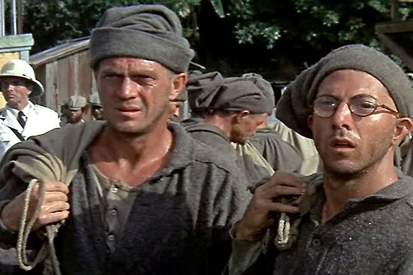 McQueen trabaja duro interpretando a un preso que no traiciona a un amigo (Dustin Hoffman), que sueña en encontrar la forma de evadirse, que lo realiza muchísimas veces y que al final tendrá éxito, costándole despedirse de su gran compañero Dega, quizás en una de las mejores escenas de la película (parece que Hoffman escogió la figura de Trumbo, para dar vida a su personaje).