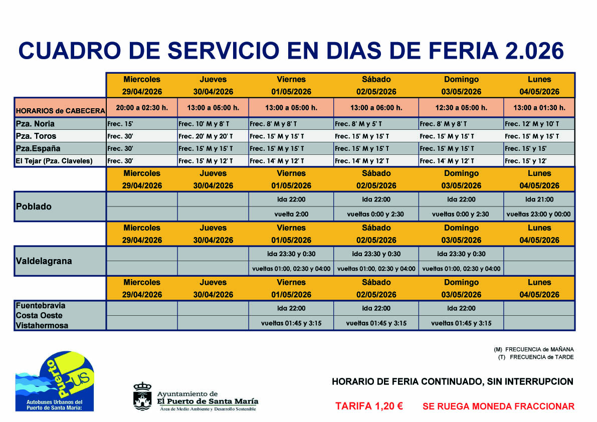El dispositivo se completa con conexiones nocturnas hacia Valdelagrana, Fuentebravía, Costa Oeste, Vistahermosa y el Poblado, así como con varias bolsas de aparcamiento habilitadas en el entorno del recinto para quienes opten por el vehículo privado. Todo el plan busca ordenar el flujo de visitantes y facilitar los accesos durante los días centrales de la Feria.